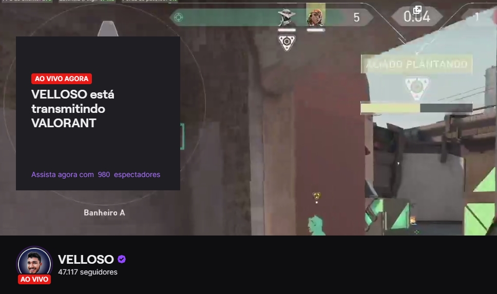Com transmissão todos os dias, Velloso possui quase 50 mil seguidores na plataforma. Assistir às suas transmissões promovem pontos para trocar por diversos brindes disponíveis na live do streamer, como RP de LoL, skins de CS:GO e periféricos.