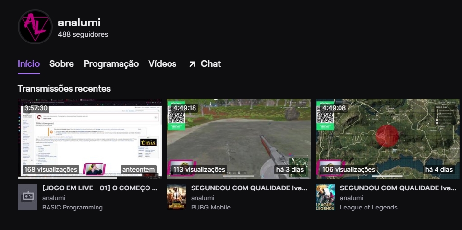 Com quase 500 seguidores na Twitch, Analumi está começando a crescer na plataforma. Se expandindo como streamer, VALORANT é um dos carros-chefe dela. No entanto, os espectadores também encontrarão outros jogos, como PUBG e League of Legends.