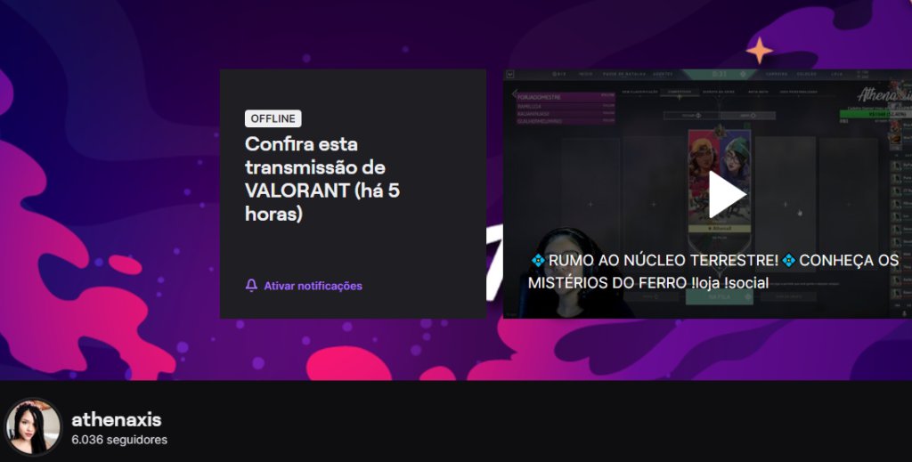 Com 6 mil seguidores, Athenaxis está presente no universo do FPS da Riot Games e de outros jogos de sucesso da atualidade. Com sensor de humor, a baiana leva na brincadeira a própria jogabilidade e descreve o canal como “gameplays high level são escassas”, mas ressalta que “não falta amor e diversão” no que produz para o público.