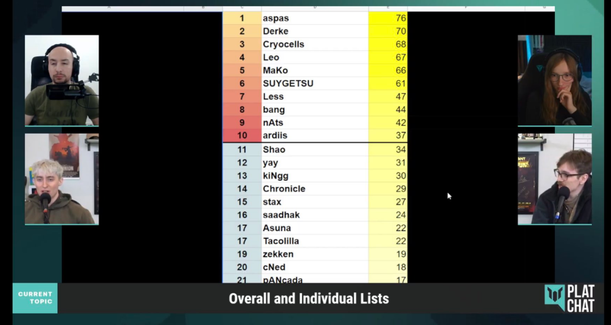 Além disso, Bryan “pANcada” Luna, um dos jogadores mais importantes da LOUD na campanha que culminou no título do VALORANT Champions 2022, apareceu somente na 21ª colocação. A comunidade brasileira saiu em defesa do atleta.