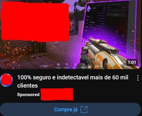 “VALORANT indetectável” e “100% seguro e indetectável, mais de 60 mil clientes” são algumas frases de efeito usadas pelos comerciantes para atrair mais compradores. O YouTube não tem filtrado tais anúncios, o que pode ser um problema devido ao seu enorme alcance.
