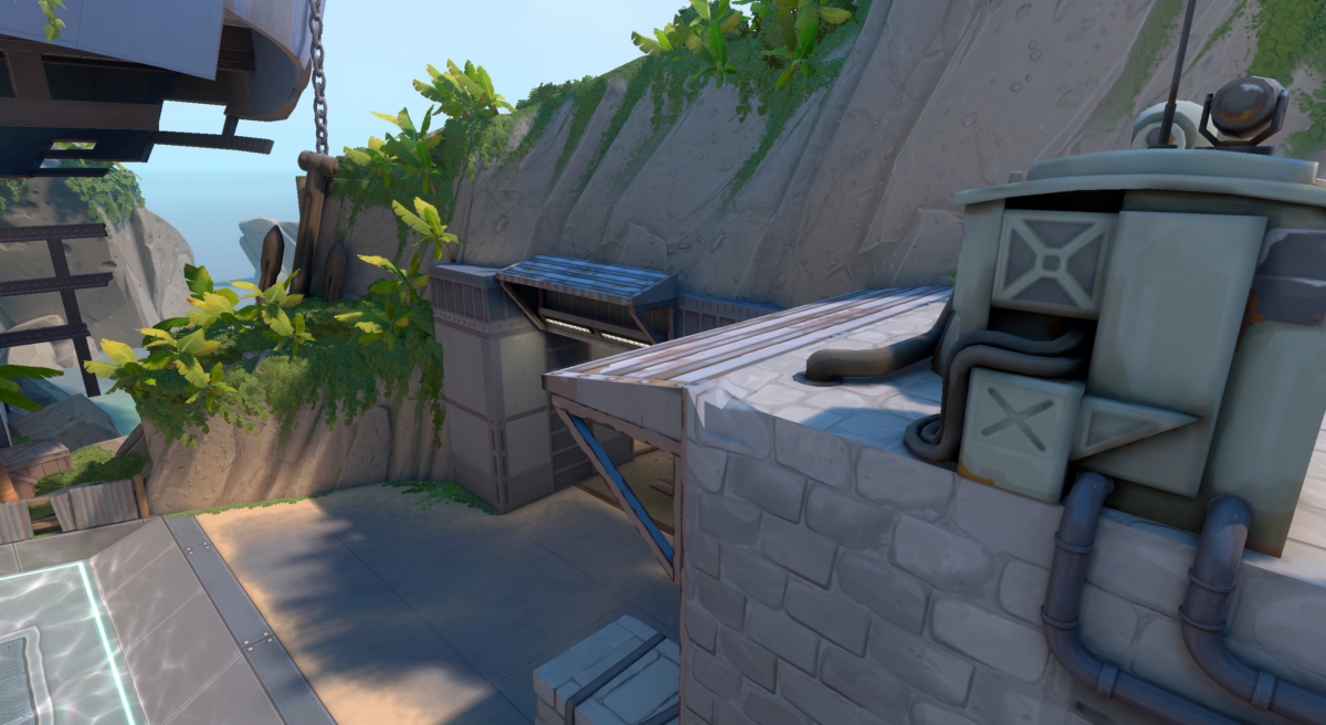 A Riot Games optou por remover a textura presente inicialmente no local. Agora não é possível adicionar a câmera acima da parede de concreto. Além disso, não deve ser mais possível enxergar através dos toldos presentes no local. Vale lembrar que o problema está desde o lançamento do mapa no dia 27 de abril de 2021.