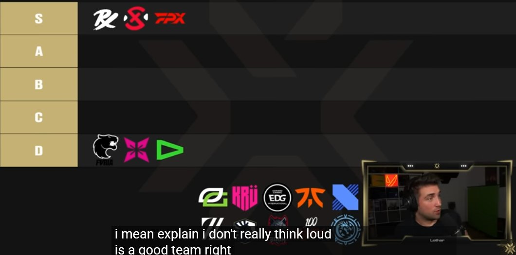No vídeo teve a participação de diversos ícones do cenário europeu de VALORANT como Jakub “Lothar” Szygulski ex-jogador e atual streamer da G2 Esports, Jessica “Jess” Bolden, Yinsu “Yinsu” Collins e entre outros. Contudo, Lothar comentou que, “pode colocar a LOUD no tier C por mim, você pode colocar em baixo, eu não ligo. Eu não acho que eles são bons”, comentou de maneira irônica. Em seguida, tanto LOUD quando FURIA foram colocados no Tier D e alguns participantes discordaram da posição da equipe esmeraldina.
