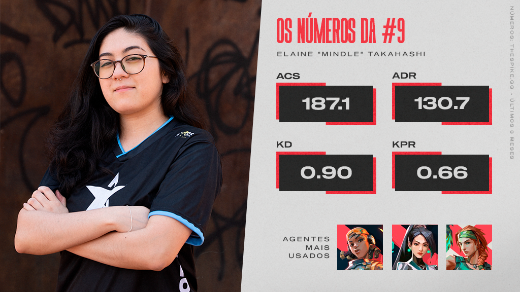 mindle começou a temporada se mostrando uma exímia Raze, mas ao longo do ano foi se mostrando versátil e importante para a equipe também jogando de Sage, Skye, KAY/O e Jett. Mas é pela Duelista baiana que a atleta tem um carinho especial: “Gosto muito da Raze, pois ela dá muita possibilidade de jogadas surpreendentes”.