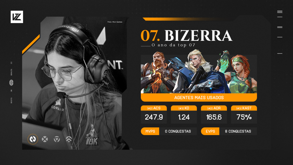 O ano de 2022 foi de grande aprendizado para Bizerra. Isso porque a jogadora disputou seus primeiros campeonatos no cenário, como também, estudou mais sobre o jogo e os agentes, lapidando sua performance a cada dia. Assim, a atleta comentou a respeito de como foi esse ano para ela: “Nesse ano de 2022 eu estava conhecendo o cenário. Eu comecei a me encaixar ali no começo do ano, fui entendo os campeonatos, a org, como que é viver de jogo. Esse ano foi realmente de novas experiências, para eu entender como funciona o cenário. Foi um ano agregador“, finalizou.