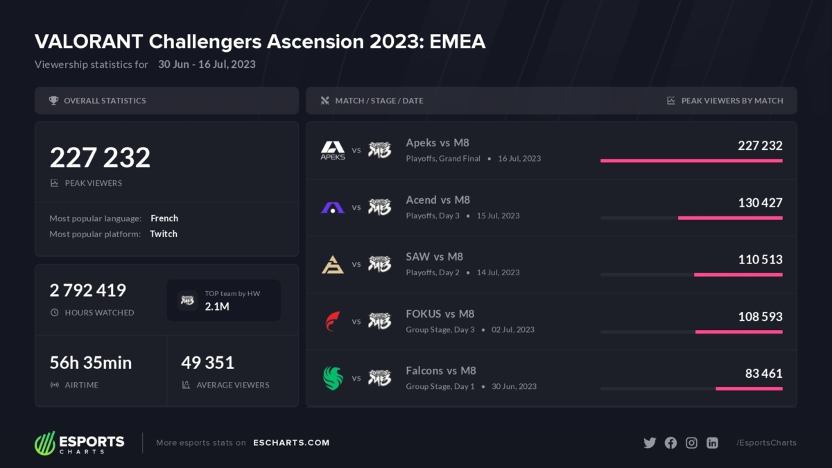 Ascension EMEA foi o campeonato com maior pico de audiência