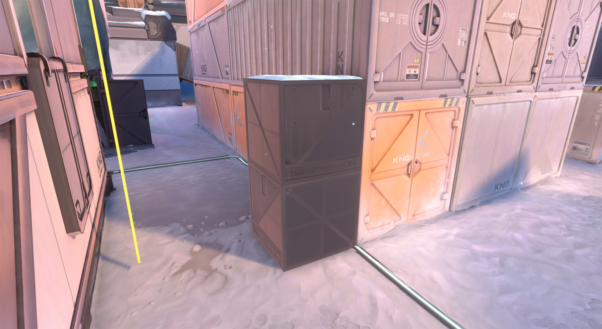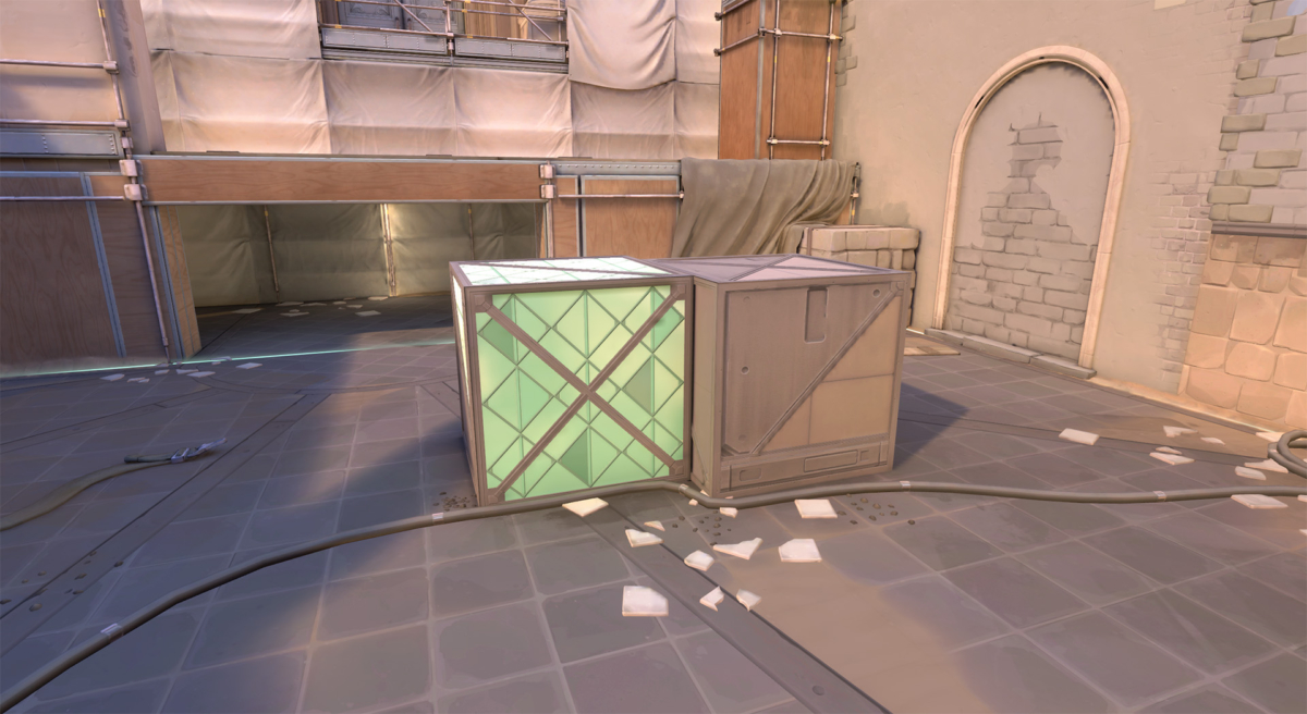 - Uma pilha de caixas no ponto C não pode mais ser atravessada por balas; isso cria uma opção mais segura para os atacantes plantarem.