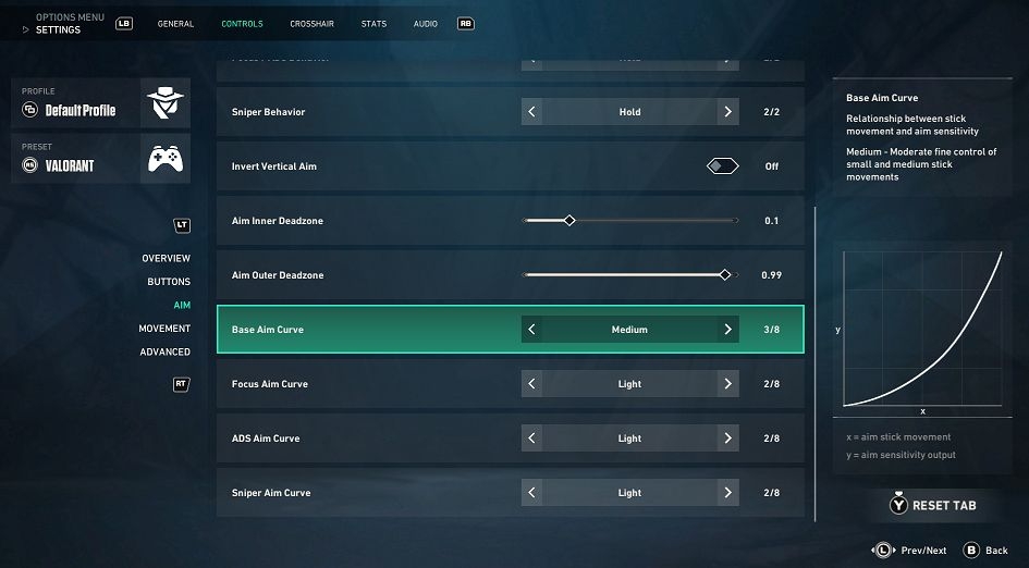 - Combinamos curvas de mira Suave e Padrão; se você tinha a curva Suave selecionada, agora terá a curva Padrão.