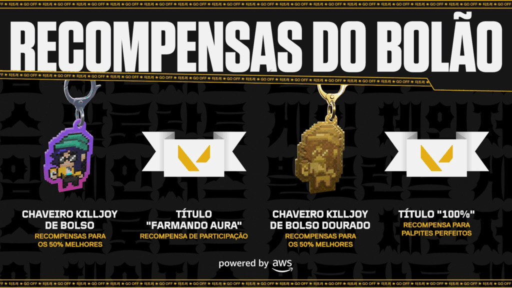 O Bolão com tecnologia AWS, faz sua estreia no Championship 2025, após o sucesso no Champions Paris 2025. Agora, os fãs e torcedores terão a chance de palpitar e escolher quem serão os vencedores dos jogos disputados durante o mundial inclusivo de VALORANT.