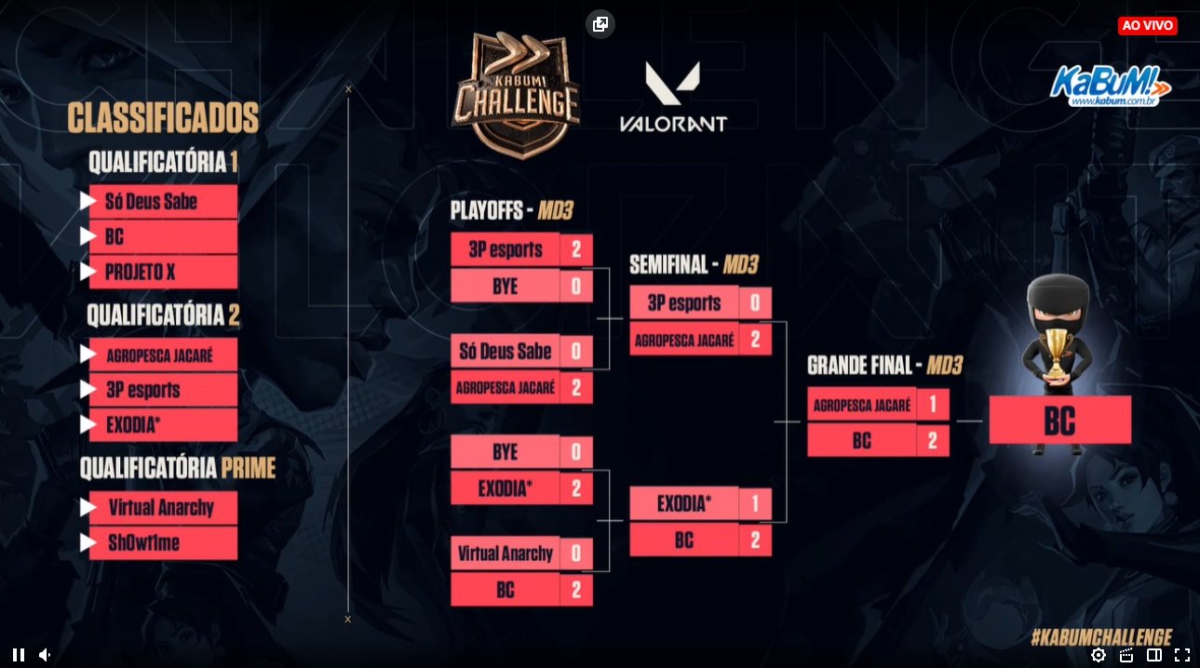 Essa foi a segunda edição do KaBuM! Challenge de VALORANT. Na primeira, realizada no ano passado, a Jaguares derrotou a ODDIK por 2 a 1 na grande final e ficou com o título do campeonato.