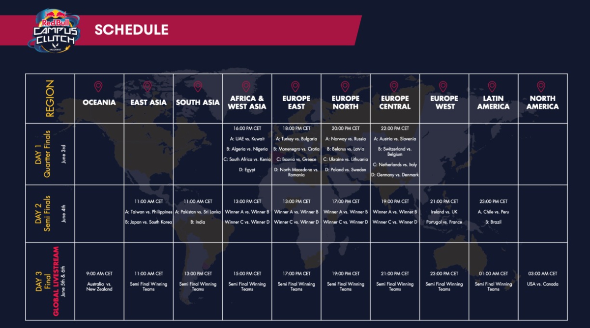 Entre as outras regiões que terão os jogos definidos entre os dias 3 a 5 de junho são: Leste da Ásia, sul da Ásia, África e oeste asiático, leste europeu, oeste europeu, norte europeu e centro da Europa. Na disputa, países que possuem grande relevância no cenário de VALORANT, como Japão e Turquia.