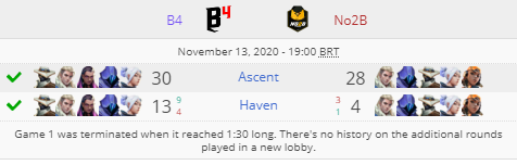 Entrando para a história do VALORANT mundial, B4 Esports e No2b foi o confronto mais longo do FPS em solo nacional, quiçá mundial. O embate válido pela seletiva fechada do First Strike teve 58 rounds jogados, com a B4 saindo vencedora por 30 a 28.