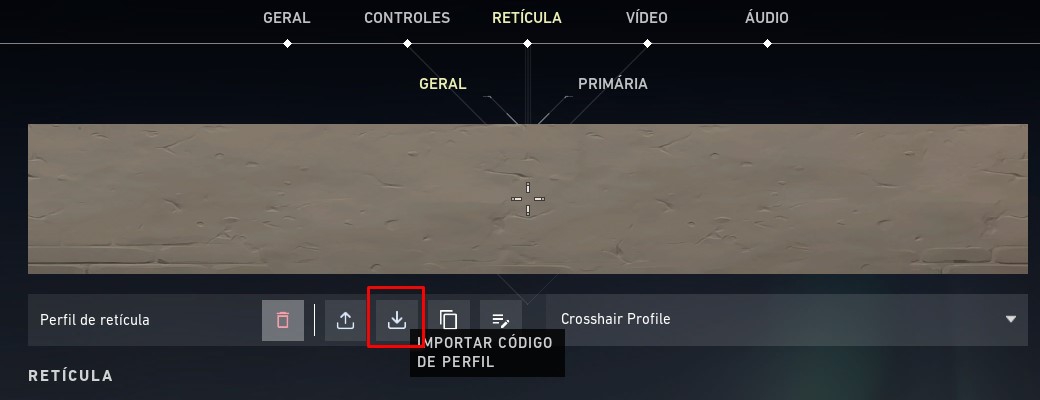 O primeiro passo para mudar a mira no VALORANT é copiar seu código. Em seguida, abra a aba de Configurações e selecione a opção de Retícula. Por fim, crie um novo perfil de retícula e clique na opção Importar código de perfil. Dessa forma, após colar o código, a mira já estará pronta para uso.