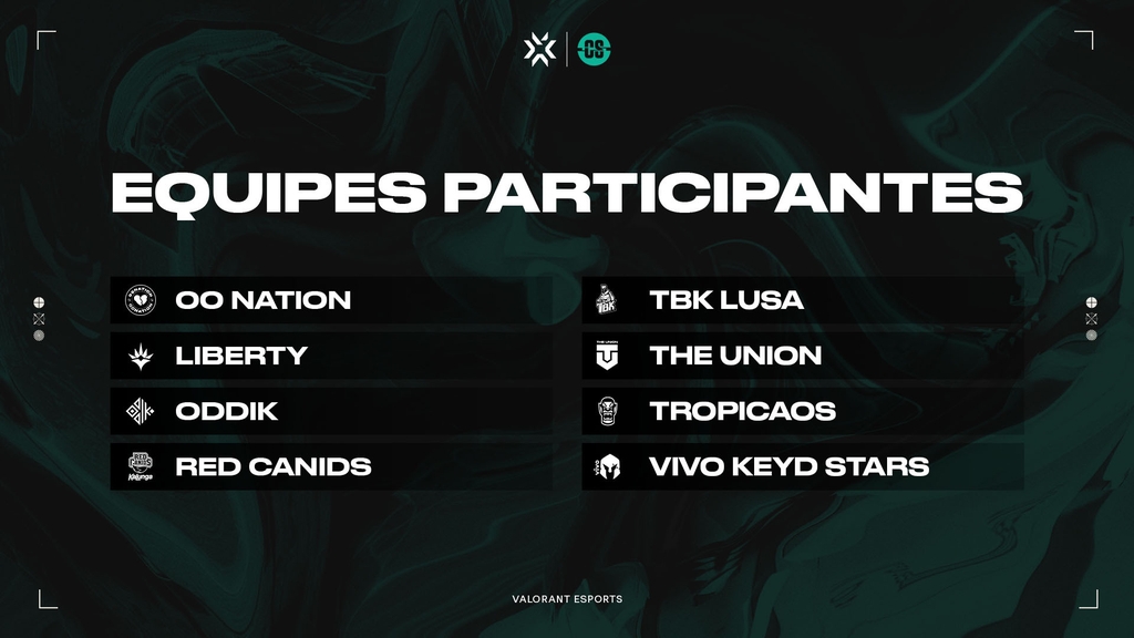Oito equipes no total participam do VALORANT Challengers Brasil 2023. 00 Nation, Liberty, ODDIK, RED Canids Kalunga, TBK Lusa, The Union, TropiCaos e Vivo Keyd Stars voltam a se enfrentar em busca de ter a possibilidade para ser promovido à Liga das Américas.