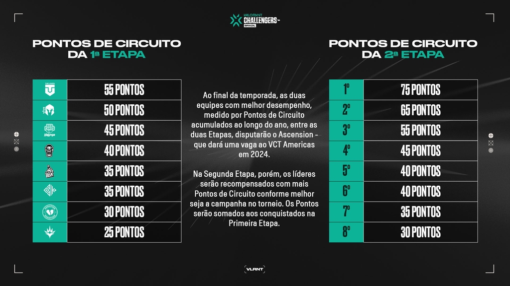 Ao final da temporada, as duas equipes com maior pontuação, vão disputar o VCT Ascension, que dará uma vaga ao VCT Américas. Após a disputa na Primeira Etapa, assim está a classificação no momento: