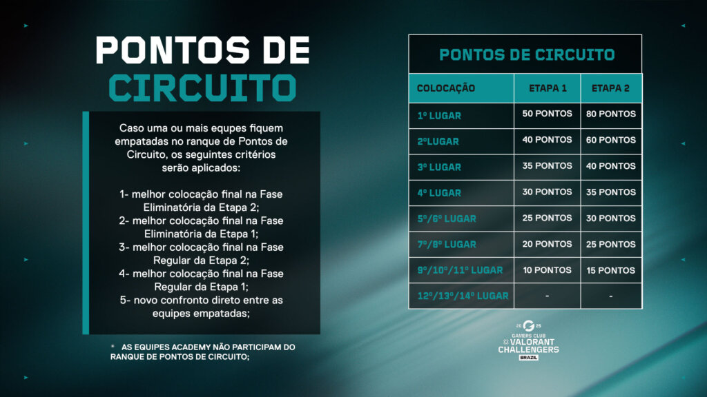 Ao fim da Etapa 2, a equipe com mais Pontos de Circuito terá o seed 1 (ou primeira vaga) para o Ascension 2025. A segunda vaga será disputada através do Challengers Last Change 2025, onde as quatro equipes, que sobraram no top 5 da tabela, se enfrentarão no formato de Eliminação Dupla. O time campeão será o segundo representante brasileiro no Ascension.