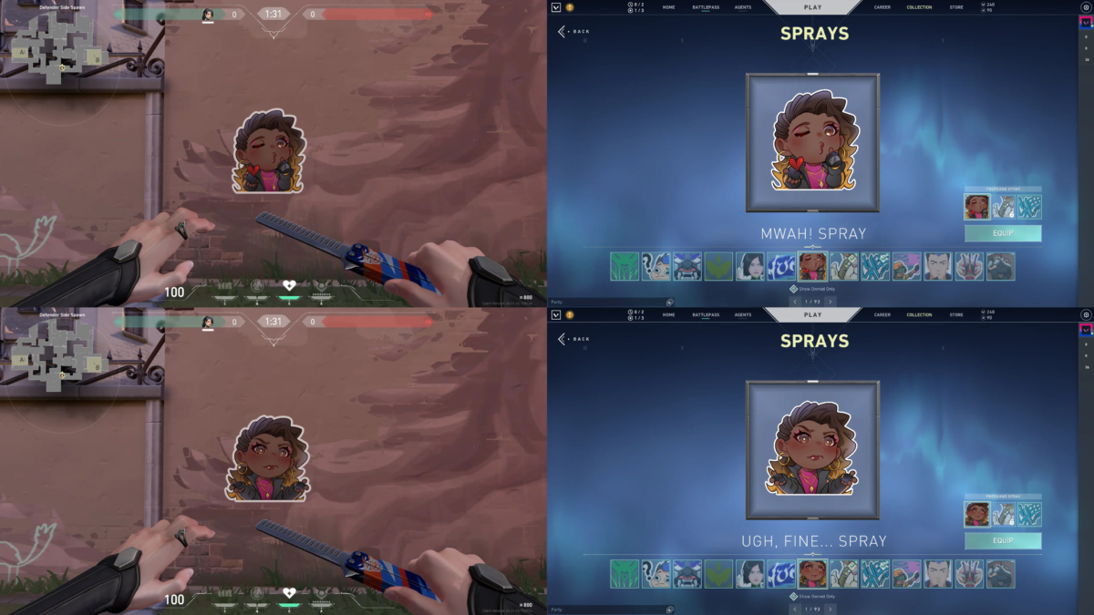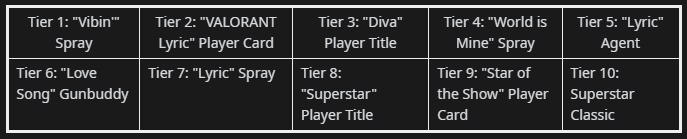 O conceito da agente do VALORANT também conta com alguns cosméticos, sendo eles: sprays, cards de jogador, chaveiro de arma, título de jogador e, no último nível, uma skin de Classic.