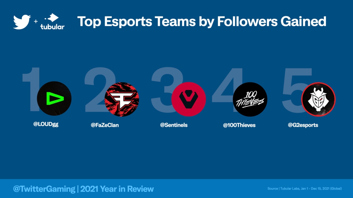 O Twitter elabrou rankings de várias categorias. A LOUD dominou a de equipes de esports mais comentadas, na qual também está a FURIA, e apareceu em outras duas, sendo o clube que mais ganhou seguidores na rede social na temporada passada.