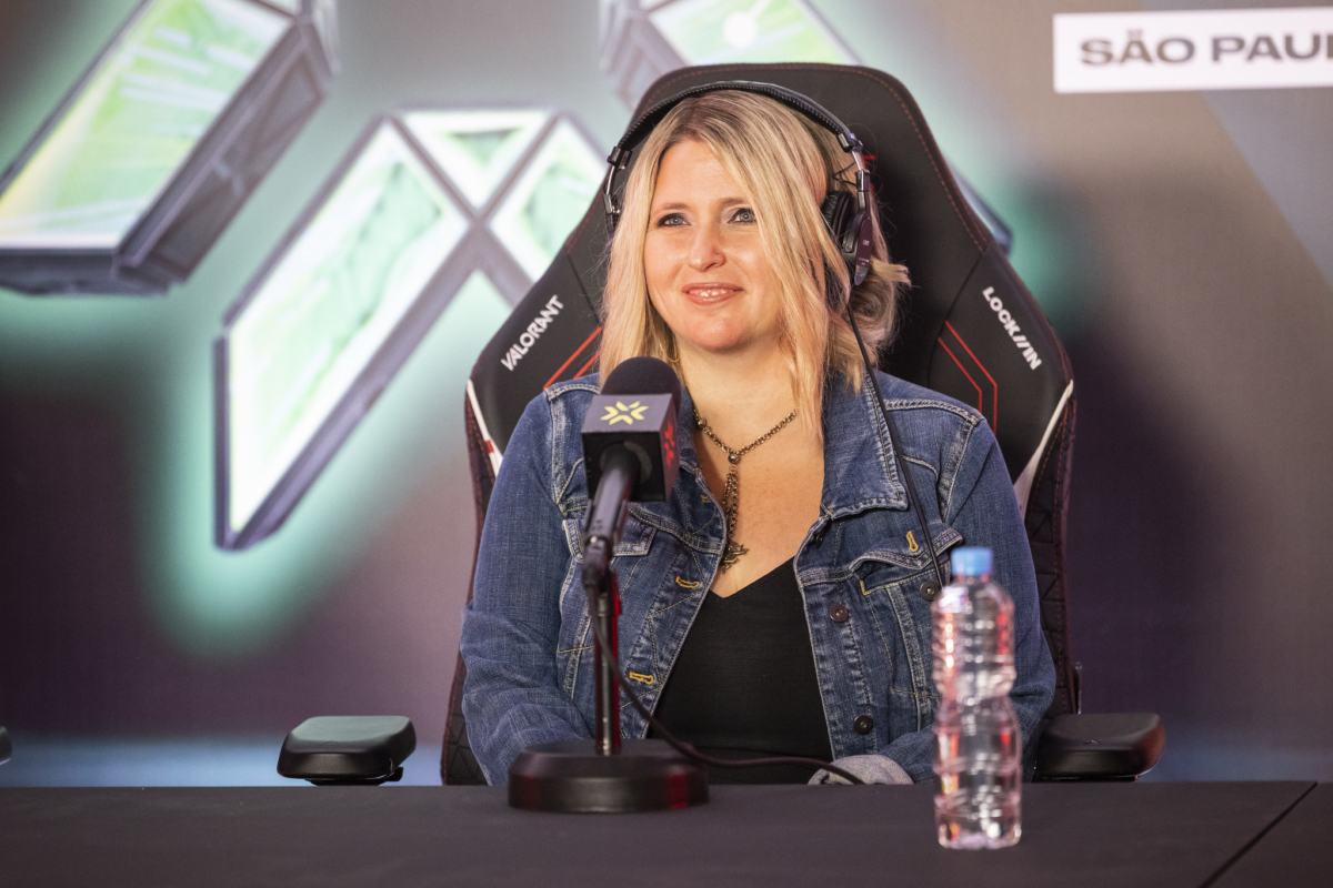 “(Falando) como uma main Raze, eu amo o lugar da onde Raze é e não quero falar especificamente sobre o Brasil porque somos um jogo muito global. Mas direi que é uma das coisas que mais amamos sobre o que estamos fazendo com VALORANT agora é que estamos celebrando jogadores de todo o mundo. O fato de nosso jogo ser ambientado na Terra oferece muitas oportunidades para contar histórias ao redor do mundo, vimos nossos jogadores se apaixonarem por essas histórias. Nossos jogadores não querem ouvir sobre si mesmos, eles querem ouvir histórias de outra região, entender o que os jogadores amam em outro país, estamos sempre nos inspirando em nossas comunidades que visitamos e de onde nossos jogadores existem.”