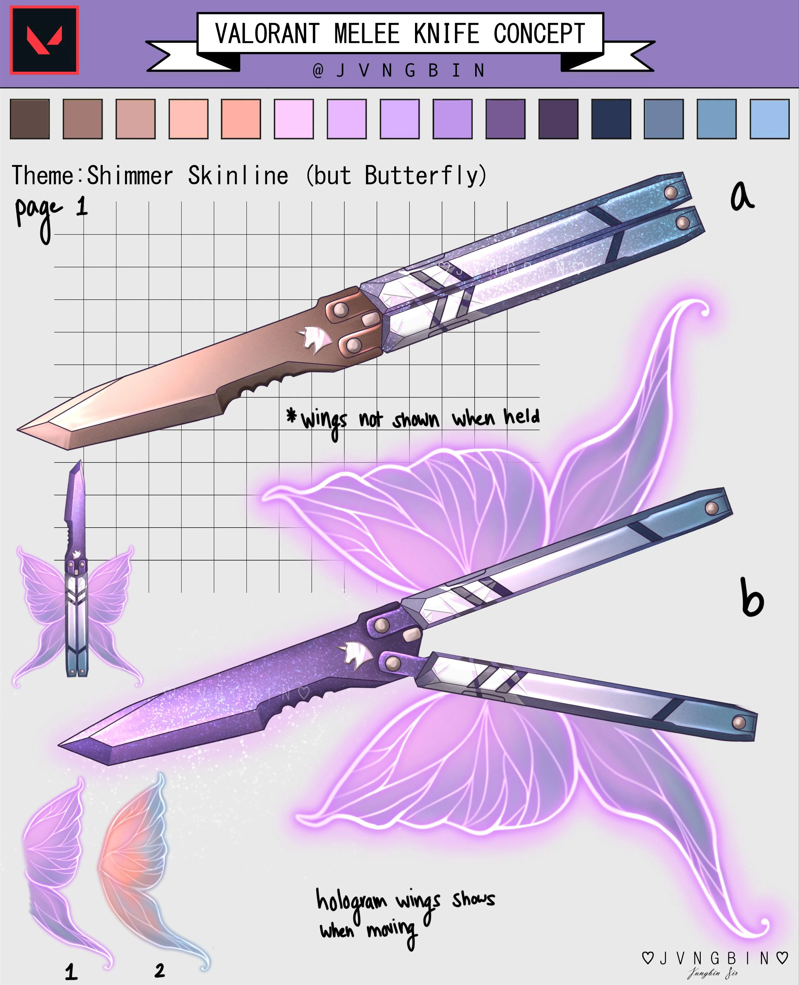 A comunidade de VALORANT é sempre bem criativa e engajada na criação de conceitos para novas skins. Neste sentido, um usuário do Reddit, “jvngbin“, criou uma faca butterfly inspirada na coleção Cintilação do passe de batalha do jogo.