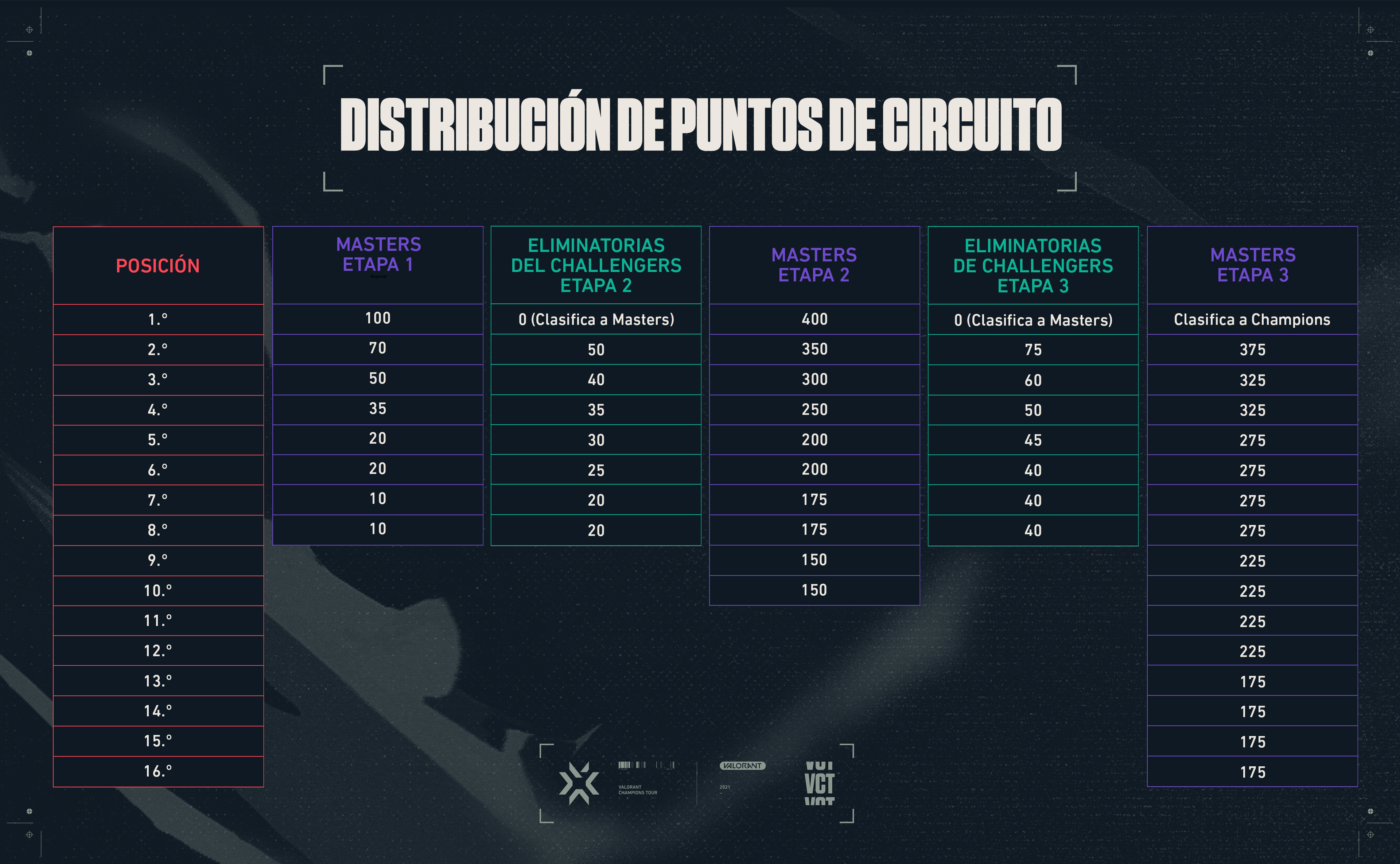 A Riot Games divulgou mais detalhes sobre as próximas etapas do VALORANT Masters e sobre o VALORANT Champions, nesta segunda-feira (29). Entre os principais itens apresentados estão os formatos das próximas duas edições do Masters, da Last Chance e do Mundial, assim como os pontos que serão distribuídos para o ranking do circuito. A desenvolvedora revelou que apenas o Masters 3 distribuirá 3350 pontos entre os 16 participantes.