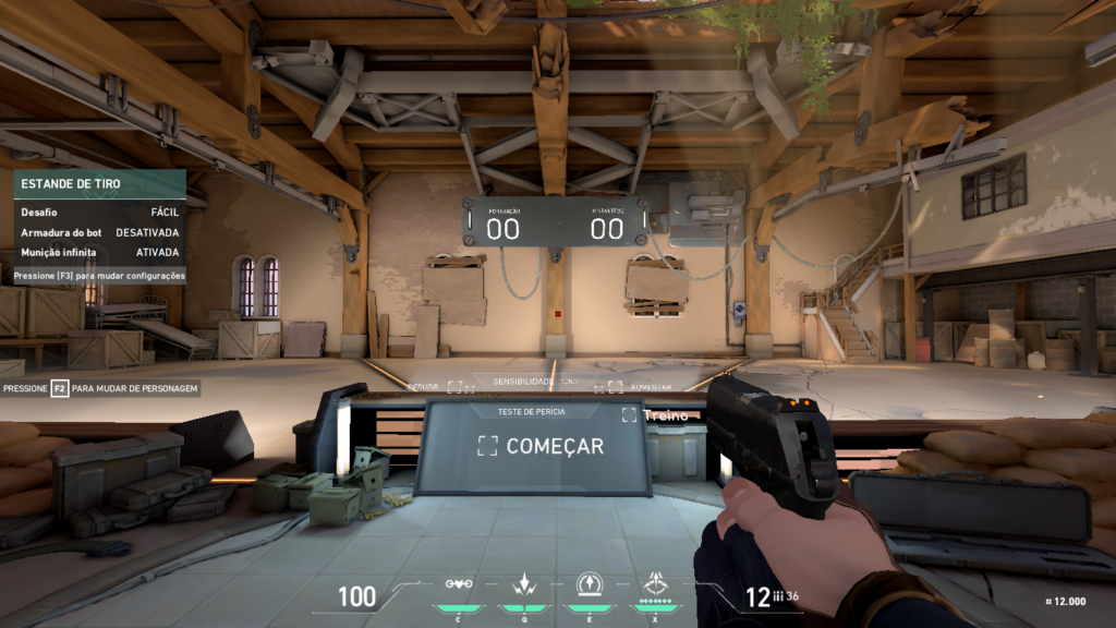 Teste de tiro: opção que direciona o jogador para o local onde poderá testar as armas, conhecer os recoils e o danos de todas, em diferentes distâncias.