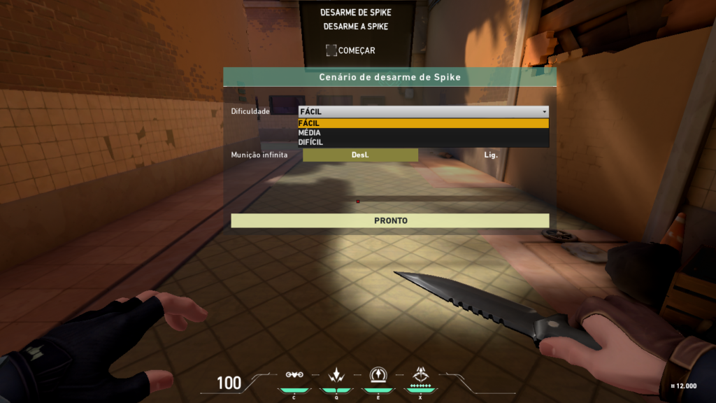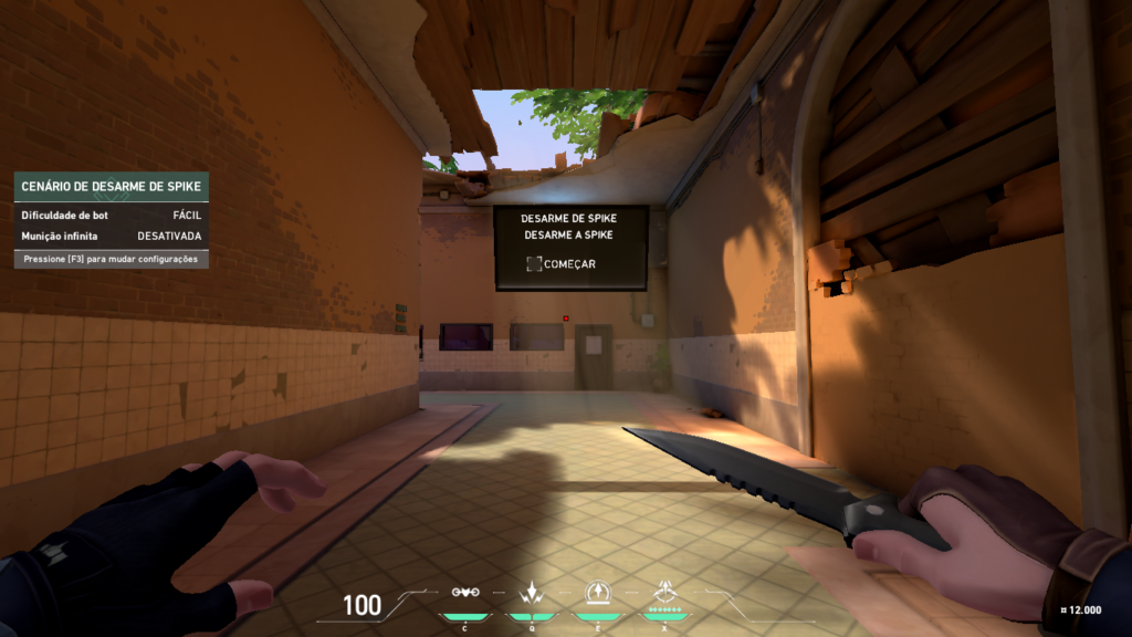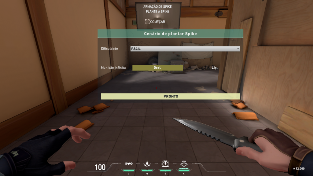 Armação de Spike: opção que ensina o jogador a armar o Spike. Para iniciar o processo, basta atirar na marcação de Começar. É possível também aumentar a dificuldade e fazer com que as armas tenham ou não munição infinita. Para isto, basta apertar F3.