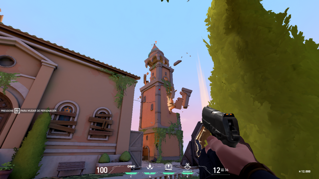 Parkour: essa opção só pode ser acessada pelo Estande aberto. Aqui o jogador poderá aperfeiçoar a mecânica de strafe e bhope em VALORANT. Para iniciar o Parkour, vá ao local indicado nas imagens e pule o buraco. O percurso termina na torre de Range.