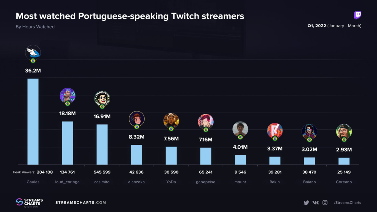 A aparição entre os maiores do primeiro trimestre reitera a força do criador de conteúdo da LOUD nas transmissões da Twitch. Isso porque com pouco mais de 1 milhão de horas assistidas na plataforma no último mês, ele conseguiu terminar entre os mais populares do Brasil na Twitch.