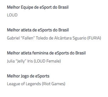 Além de Jelly ter vencido como melhor atleta do cenário brasileiro e a LOUD ter sido escolhida como melhor organização, outros nomes importantes apareceram entre os ganhadores, como Gabriel “FalleN” Toledo e o League of Legends, outro título da Riot Games.