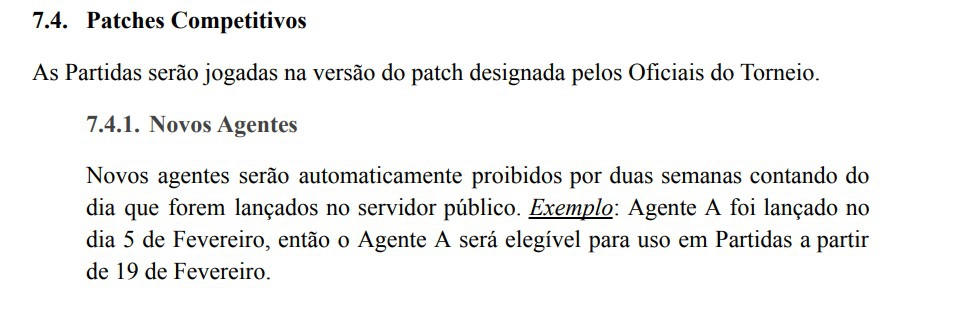 Segundo o Regulamento Oficial da Etapa 3 do Valorant Challengers Brasil, novos agentes só podem ser usados depois de duas semanas contando dia que forem lançados no servidor público. KAY/O foi lançado oficialmente dia 22 de junho e no dia 6 de julho, fez duas semanas desde a sua chegada. Contudo, a Riot Games Brasil não revelou se o operador poderá ser usado em um torneio que já está em andamento.