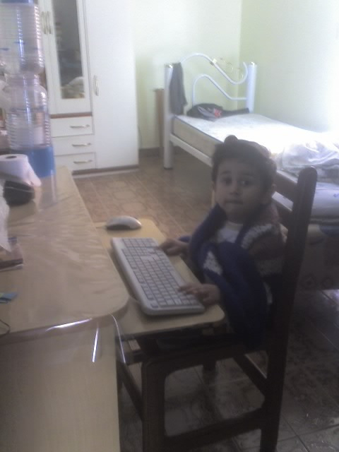 Askia em uma de suas primeiras vezes no computador (Foto: Arquivo Pessoal)