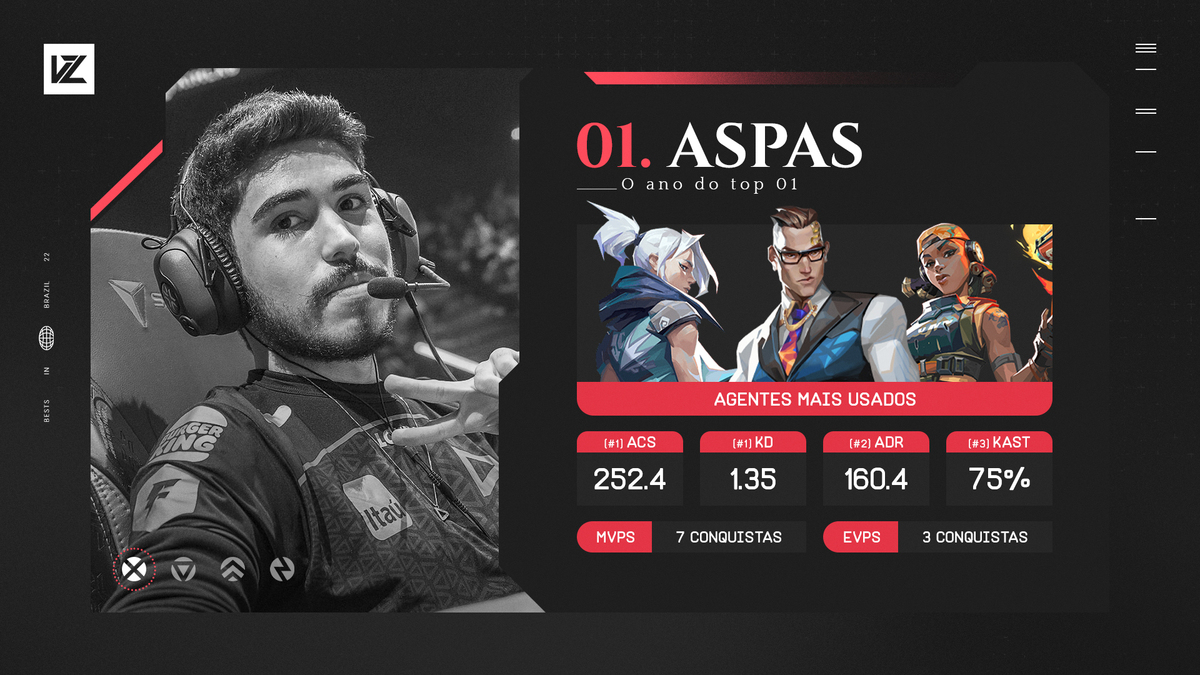 Aspas fechou a temporada com 252.4 de ACS, 1.35 de rating, 160.4 de ADR e 75% de KAST, sendo o jogador mais impactante e constante da LOUD durante todo o ano. Com uma mira apurada e a movimentação lisa, o atleta doutrinou em território brasileiro.