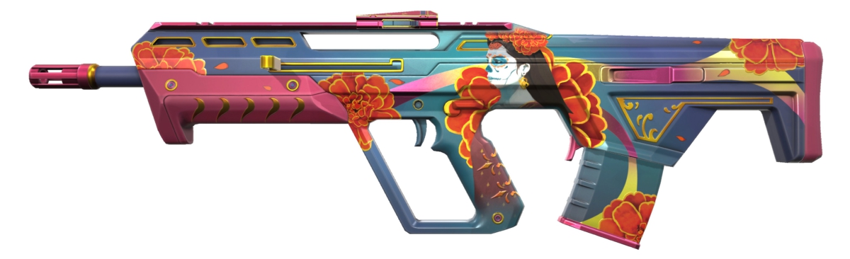 As novas skins chegarão para as armas Vandal, Frenzy, Areas, Bulldog, a faca Catrina e um card comemorativo junto, além disso, elas contam com uma cor diferente também. Veja abaixo as fotos dos novos cosméticos: