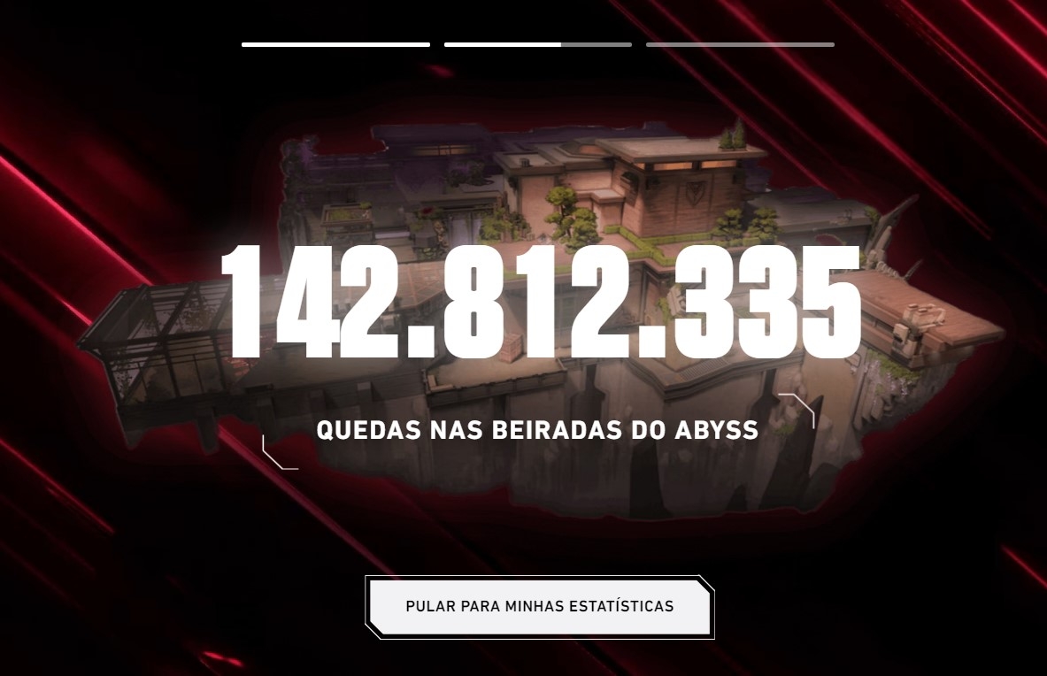 3) Neste momento, a Riot Games começa a apresentar algumas estatísticas do VALORANT ao longo de 2024. Caso queira pular direto para as suas estatísticas individuais, clique no botão na parte de baixo da tela.