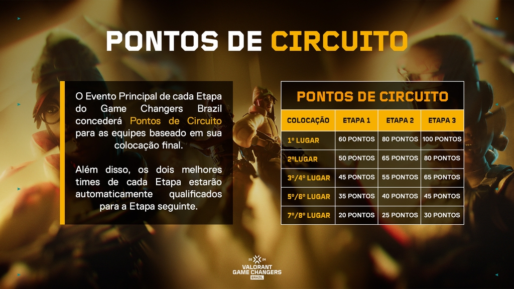 A equipe que quer chegar ao mundial terá que fazer grande campanha nas três Etapas do Game Changers. A pontução, como de costume, cresce de acordo com as etapas. Confira os valores abaixo: