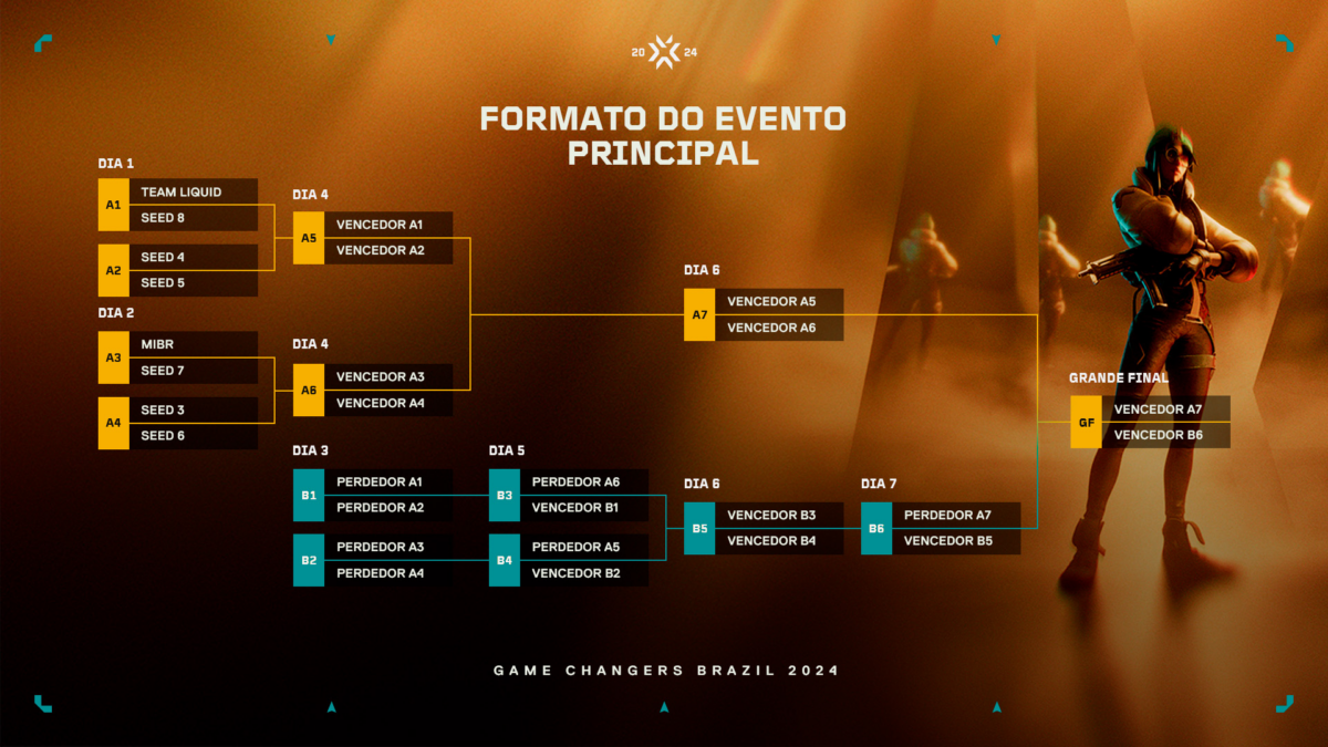 Finalistas da primeira etapa, Team Liquid e MIBR já estão garantidas, por regra, no main event da segunda etapa. Desta forma, as classificatórias abertas terão seis vagas totais. Após duas etapas, as seis melhores equipes em pontuação total estarão na fase principal do segundo split do Game Changers Brasil 2024. Veja as datas:
