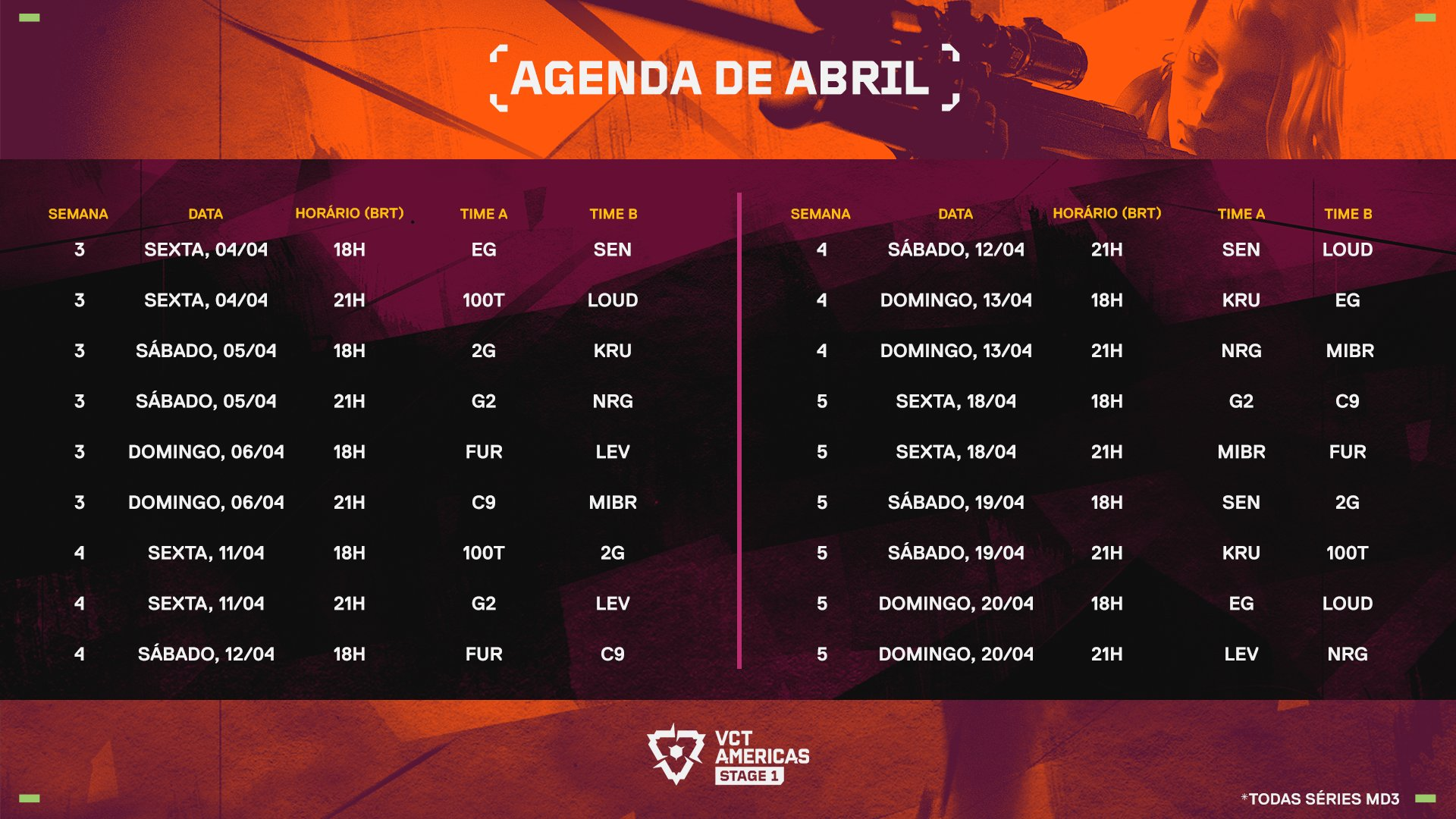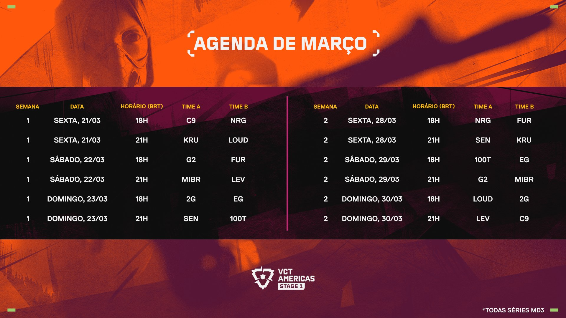 Nesta sexta-feira (7), a Riot Games revelou todo o cronograma da Etapa 1 do VCT Americas. Após o término do Masters Bangkok, o cenário competitivo retorna aos confrontos regionais, com destaque para as equipes brasileiras LOUD, MIBR, FURIA e 2GAME.