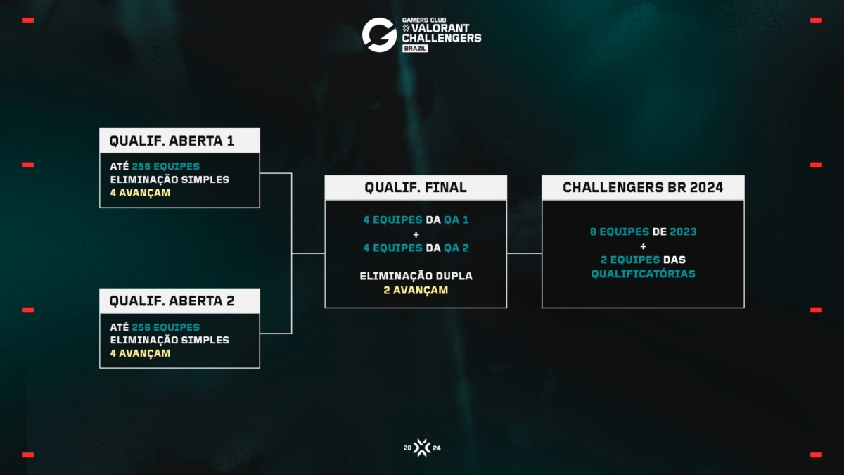 O classificatório fechado, portanto, conta com a participação de oito equipes e será disputado no formato de eliminação dupla. As duas melhores equipes garantem vaga na primeira etapa do Gamers Club VALORANT Challengers Brasil 2024.