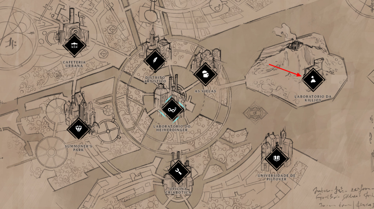 Para conhecer a sala da sentinela basta acessar a página RiotX Arcane. Em seguida, basta fazer login na conta Riot para ter acesso a todo universo. Ao entrar na tela inicial, basta abrir o mapa, no canto superior esquerdo da tela e procurar: “Laboratório da Killjoy”.