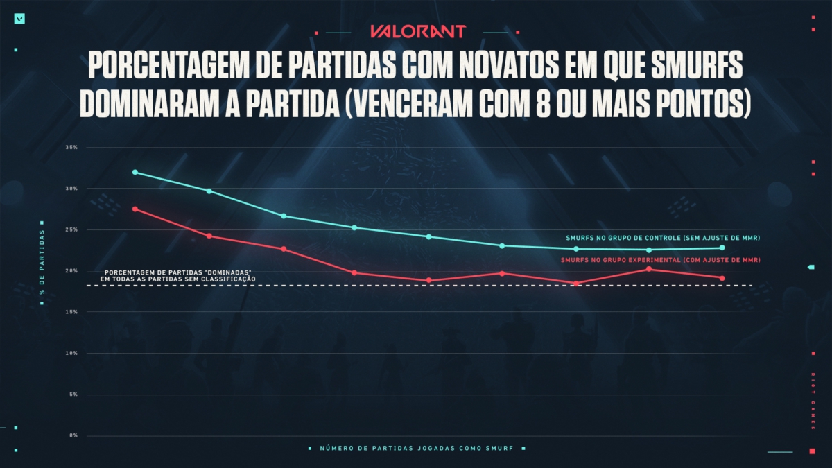 Para reduzir a porcentagem, a desenvolvedora começou a ajustar os MMRs de apenas 50% das smurfs detectadas, e as outras 50% foram ignoradas no momento (o grupo de controle). Essa divisão foi necessária para determinar se os ajustes feitos tiveram algum impacto real no balanceamento das partidas.