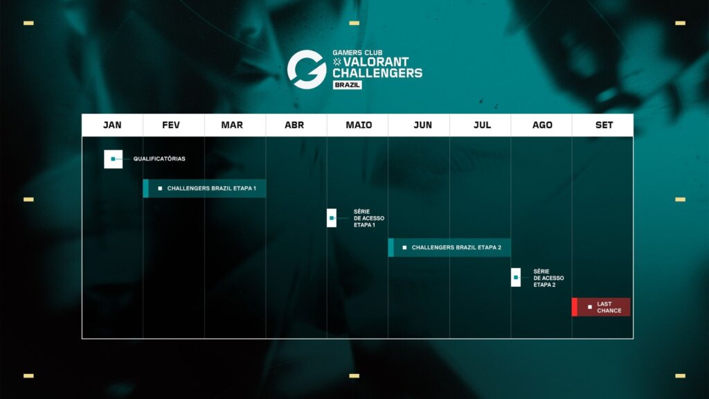 Conforme apresentado pelo VALORANT BR, a série de acesso do Stage 1 tem início em maio, enquanto o Stage 2 do Challengers Brazil começa em junho e vai até julho de 2025. A repescagem da segunda etapa da competição acontece em setembro, após sua série de acesso, em agosto. Desta forma, o ano de 2025 acaba para a Liga Regional de VALORANT.