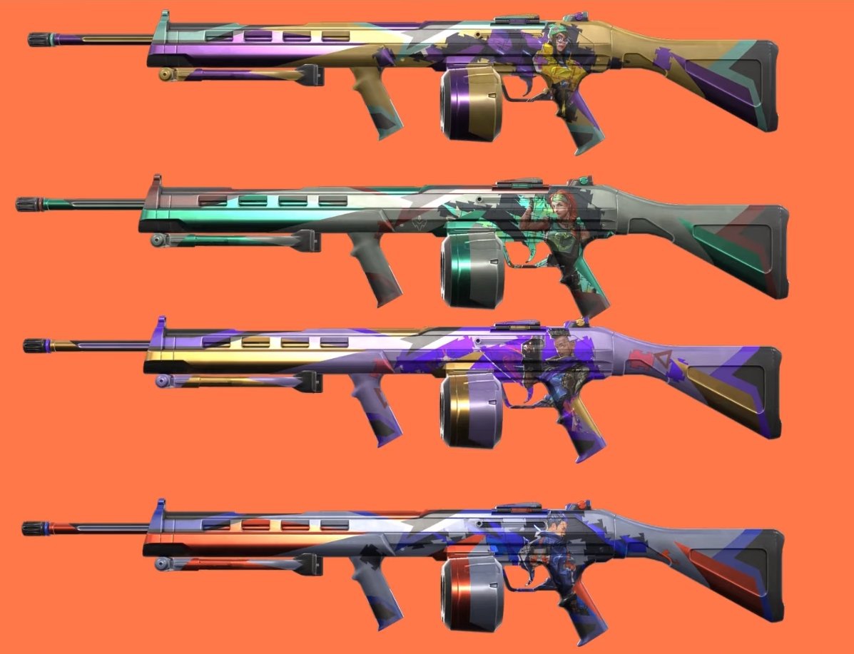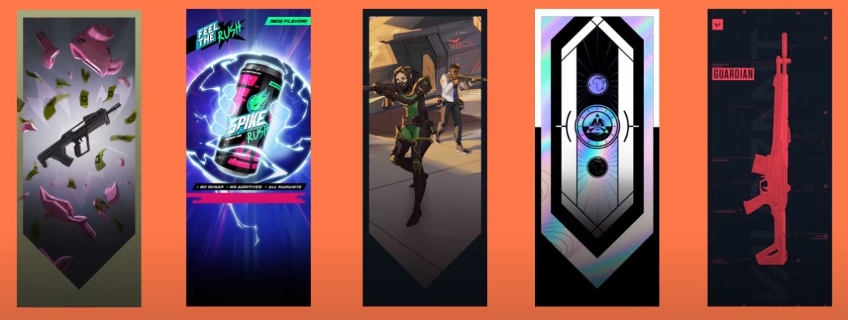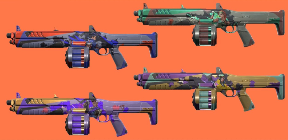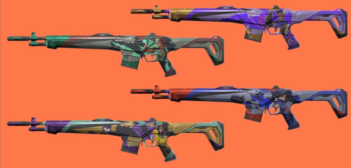 “Decidimos desenvolver variantes usando as ilustrações principais dos Agentes que foram lançados nesse último ano: Killjoy, Skye, Yoru e Astra (foi mal, KAY/O). Achamos que é uma ótima forma de representar esses Agentes no Passe!”, conta o líder de arte Sean Marino.