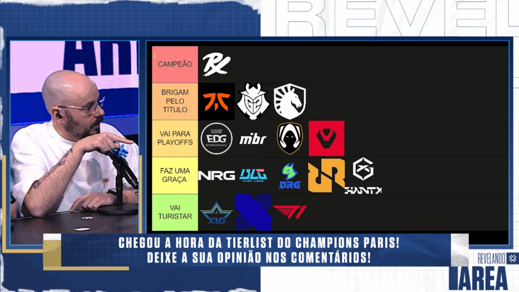 Após o término do debate, a bancada elegeu a Paper Rex como favorita ao título do Champions de Paris. Na corrida por fora, estão a G2, FNATIC e Team Liquid, enquanto XLG, DRX e T1 não devem causar grandes problemas aos adversários. Assim ficou a Tier List final feita pelo grupo:
