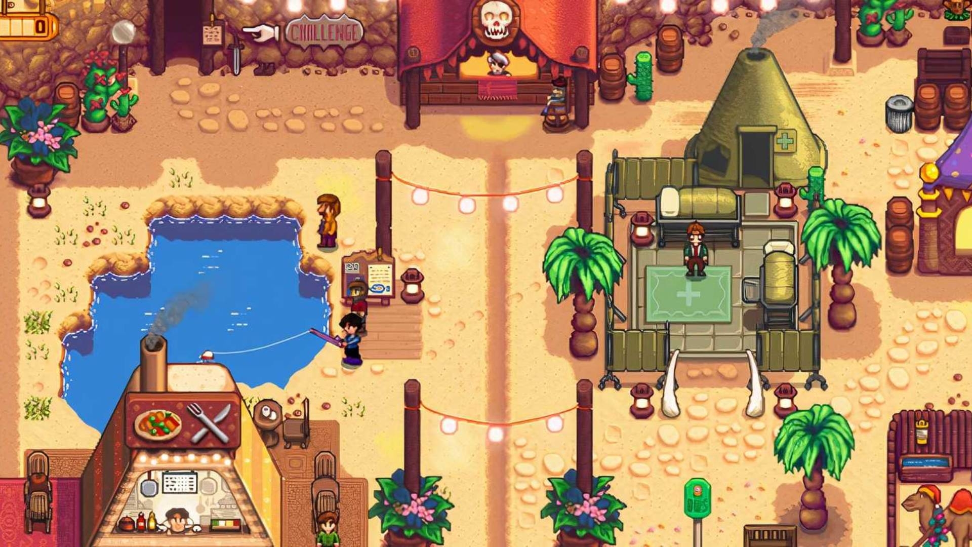 Uma das maiores novidades da versão 1.6 acontece entre os dias 15 e 17 da primavera. Após consertar o ônibus que vai para o deserto, você terá acesso a um evento massivo no Deserto Calico com mecânicas inéditas. O Festival do Deserto traz uma série de atividades emocionantes, recompensas e lojas exclusivas para o fazendeiro explorar.