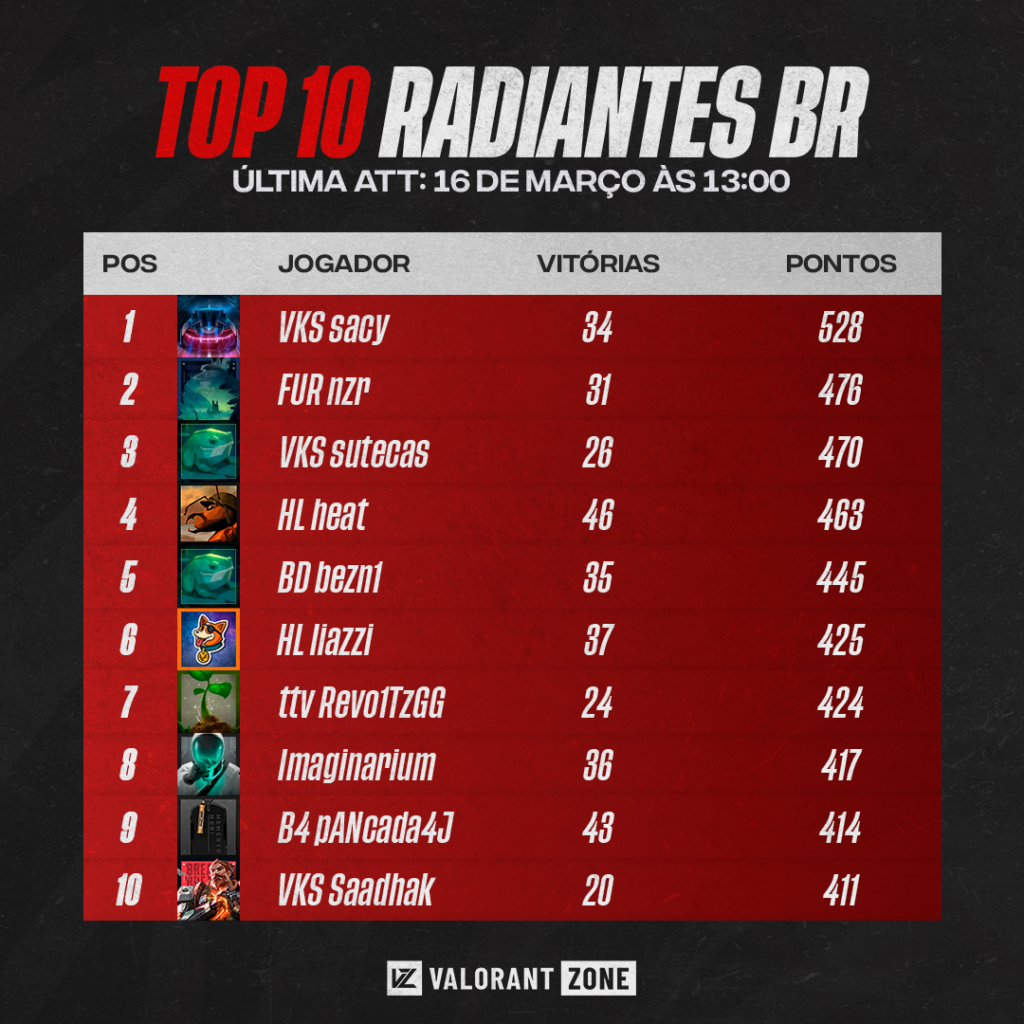 Parece que ninguém consegue tirar a liderança de Gustavo “Sacy” Rossi no Top 10. Nesta segunda semana do Ato 2 – Formação, mais jogadores profissionais aparecem na classificação competitiva. A lista foi feita a partir da tabela às 13h00 (horário de Brasília).