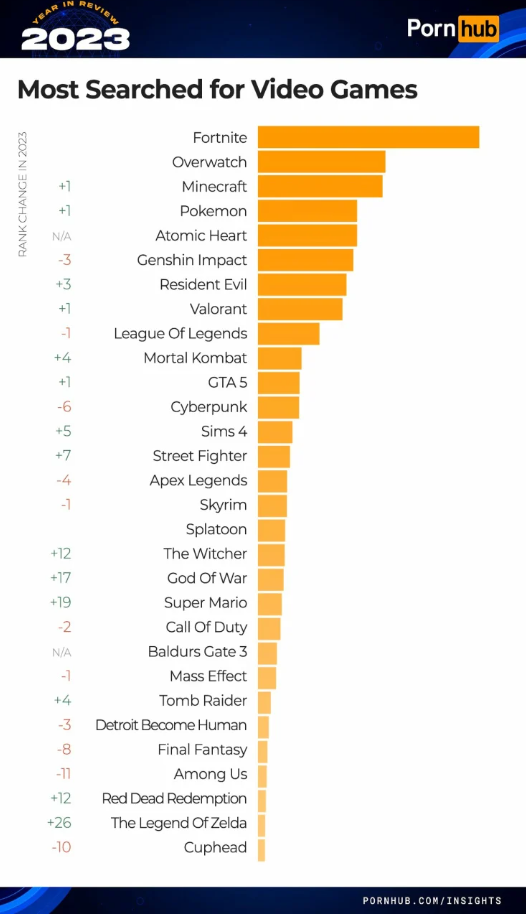 O VALORANT se tornou um título famoso em pouco tempo e, em diversos sites, o jogo da Riot Games foi pesquisado, incluindo no Pornhub. Em 2023, o VALORANT foi o 8ª jogo mais pesquisado no site adulto, o ranking foi divulgado pelo próprio site.
