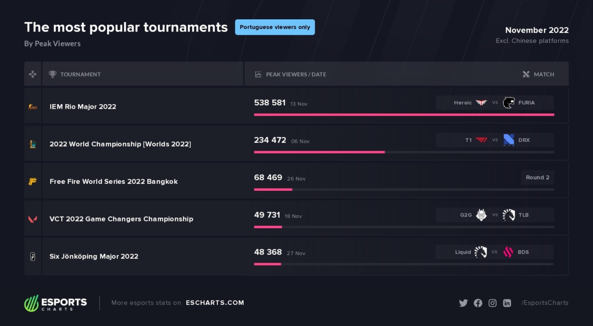 A conquista é um feito e tanto para o cenário feminino no Brasil, que ficou atrás apenas de IEM Rio Major 2022, Worlds de League of Legends e Free Fire World Series (FFWS) de Bangkok. As competições atraíram 538 mil, 234 mil e 68 mil dispositivos simultâneos, respectivamente.