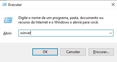 - Aperte as teclas Windows + R no seu teclado. Ao abrir a caixa de “Executar”, digite o seguinte comando: winver
