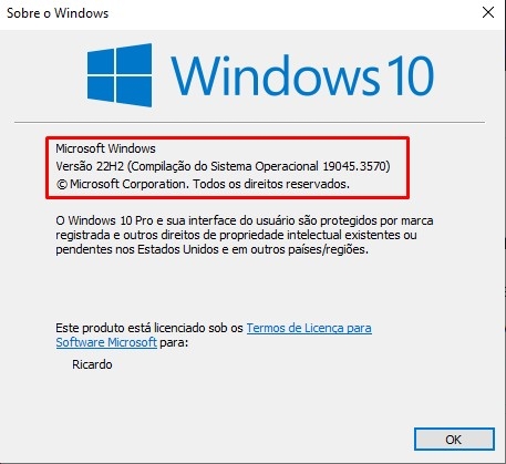 - A versão do seu sistema operacional estará descrita na caixa de mensagem que abrirá na sequência, como por exemplo: